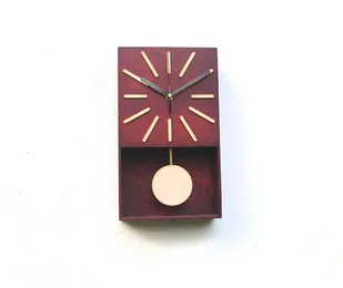 Ten unikatowy mahoniowy zegar ścienny z wahadłem został wykonany ręcznie z drewna i sklejki. To piękne czarne arcydzieło udekoruje Twój pokój i będzie idealnym prezentem. Zegar jest cichy i zasilany pojedync ...