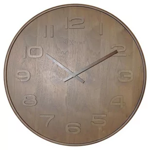 Zegar ścienny Wood Nextime w kolorze brązowym to propozycja do wszystkich minimalistycznych wnętrz. Pasuje do drewnianych dodatków i dobrze prezentuje się praktycznie w każdym wnętrzu - zwłaszcza tym o surowym wystroju. Na prostej tarczy zostały trójwymiarowymi cyframi zaznaczone godziny, a w centrum znajdują się identyczne kolorystycznie wskazówki. Zegar Wood w rozmiarze M wykonany jest z drewna i wyposażony w skokowy mechanizm kwarcowy zasilany baterią AA.