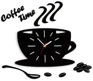Nietuzinkowy design Ożywi każdą kuchnię swoim modnym wyglądem Unikalna forma zegara w kształcie filiżanki z napisem "coffee time" Cyfry 3D nadają mu głębi i wyrazistości Szklana tarcza zegara zapewnia łatwą czytelność godziny Estetyczny design i wysoka funkcjonalność: czarne, matowe szkło akrylowe 30 razy bardziej wytrzymały niż zwykłe szkło białe, trójwymiarowe cyfry cichy mechanizm kwarcowy tarcza ze wskazówkami jest do zamontowania na haczyk. Elementy dekoracyjne montuje się do ściany za pomocą taśmy montażowej - każdy element jest podklejony taśmą Wymiary: Całkowity wymiar: szerokość: 64cm, wysokość: