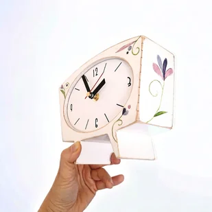 Zegar drewniany biurkowy biały folk
