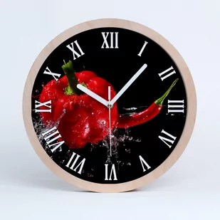 Zegar drewniany rzymski czerwone papryki fi 30 cm, Tulup