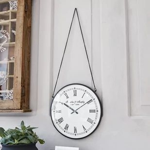 Z tego pięknego modelu z żelaza emanuje wdzięk starego zegara z fabrycznego biura lub urokliwego antykwariatu. Tarczę o ciemnej krawędzi zdobią rzymskie cyfry. Napis w stylu vintage wspaniale dopełnia stylową tarczę. Delikatny, wykonany z żelaza łańcuszek nie tylko przyciąga wzrok. Służy on również jako stabilne zawieszenie dla zegara.