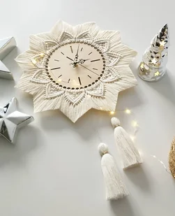 Jeśli jesteś wielbicielem stylu boho ( i nie tylko) ten Zegar jest idealny dla Ciebie. Wykonany techniką makramy zegar ścienny o średnicy całkowitej około 41-42cm. Długość z chwostami wynosi około 60cm. Połą ...