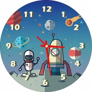 Zegar Ścienny Dla Dzieci Kosmos Robot Rakieta 30Cm