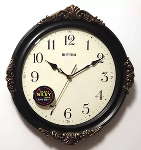 Klasyczny zdobiony czytelny drewniany zegar ścienny RHYTHM. Czytelne czarne arabskie cyfry kontrastujące z kremową tarczą. Cichy mechanizm kwarcowy. Średnica 33 cm Zegar na ścianę Rhythm CMG433NR06 OPIS SZCZEGÓŁOWY: FORMAT WYŚWIETLANIA GODZINY 12-godzinny OBUDOWA drewniana kolor ciemnobrązowy zdobienia w kolorze starego złota SZYBKA szklana wypukła TARCZA kolor kremowy oznaczenia minut CYFRY czarne, arabskie, czytelne WSKAZÓWKI aluminiowe, czarne wskazówka sekundnika w kolorze złotym MECHANIZM kwarcowy cichy z płynącym sekundnikiem ZASILANIE 1 bateria typu AA (LR6) - w zestawie czas pracy na 1 baterii alkalicznej - ok.