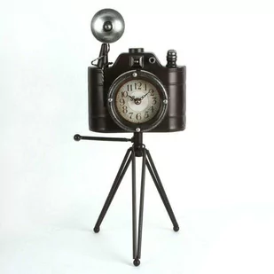 Wygląd Ten metalowy zegar w kształcie aparatu na statywie będzie idealnym dodatkiem do każdego domu, gdzie dominuje styl vintage-inspirowany starymi klasycznymi rzeczami z duszą. Posiada arabską tarczę z czarnymi wężowymi wskazówkami oraz białą wyblakła tarczą. Zasilany jest na jedną baterię AA. Idealnie będzie pasował do wnętrza salonu, jak i kuchni w stylu klasycznym. Zegar będzie również idealnym pomysłem na prezent dla osoby lubiącej dodatki w stylu vintage.