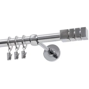 Karnisz pojedynczy chrom jest bardzo estetycznym produktem, który możesz stosować wewnątrz budynków. To również gotowy zestaw, który obejmuje wszystkie elementy potrzebne do montażu. Oprócz kołków w zestawie znajdziesz również wsporniki, zakończenia, rurkę, a także kółka wraz z żabkami.