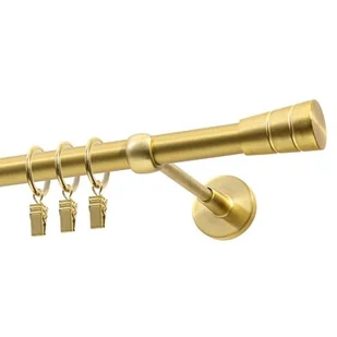 Pojedynczy karnisz w kolorze mosiądz satyna to elegancki element wyposażenia wnętrz, który doskonale komponuje się z nowoczesnymi aranżacjami. Produkt wykonany z metalu zapewnia trwałość, a jego zestaw obejmuje wszystkie niezbędne akcesoria do montażu, w tym drążek, wsporniki, zakończenia oraz kółka z żabkami. Dzięki temu instalacja jest szybka i wygodna.