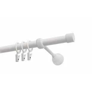Karnisz pojedynczy w kolorze białym, z zestawem montażowym.