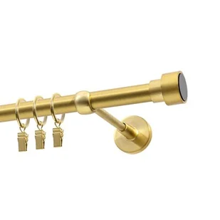 Karnisz pojedynczy mosiądz satyna jest bardzo estetycznym produktem, który możesz stosować wewnątrz budynków. To również gotowy zestaw, który obejmuje wszystkie elementy potrzebne do montażu. Oprócz kołków w zestawie znajdziesz również wsporniki, zakończenia, rurkę, a także kółka wraz z żabkami.