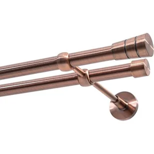 Karnisz Modern podwójny miedziany to estetyczny, gotowy do montażu zestaw idealny do nowoczesnych aranżacji. Zawiera wszystko, co potrzebne do montażu.