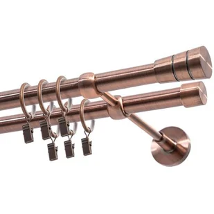 Karnisz DECASTYL Stożek podwójny w kolorze miedzi jest bardzo estetycznym produktem, który możesz stosować wewnątrz budynków. To również gotowy zestaw, który obejmuje wszystkie elementy potrzebne do montażu. Oprócz kołków w zestawie znajdziesz również wsporniki, zakończenia, rurkę, a także kółka wraz z żabkami. Pozwoli Ci to na sprawne przeprowadzenie montażu.