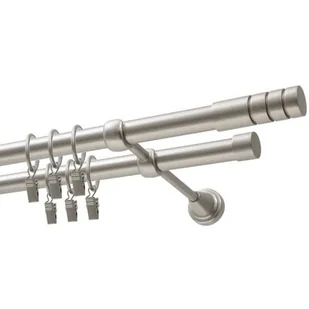 Karnisz DECASTYL Techno Podwójny z kółkami 320 cm w kolorze chrom satyna to elegancki, metalowy produkt idealny do nowoczesnych wnętrz, zapewniający łatwy montaż dzięki kompletnemu zestawowi. Wyposażony w cichobieżne kółka i estetyczne zakończenia, doskonale komponuje się w różnych aranżacjach okiennych.