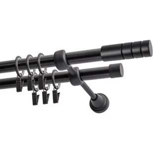 Karnisz podwójny czarny jest bardzo estetycznym produktem, który możesz stosować wewnątrz budynków. To również gotowy zestaw, który obejmuje wszystkie elementy potrzebne do montażu. Oprócz kołków w zestawie znajdziesz również wsporniki, zakończenia, rurkę, a także kółka wraz z żabkami. Pozwoli Ci to na sprawne przeprowadzenie montażu. Karnisz jest wykonany z metalu.