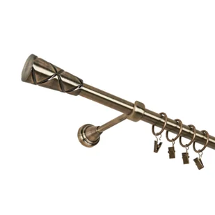Karnisz pojedynczy 19 mm antyczny mosiądz 160 cm żabka cezar