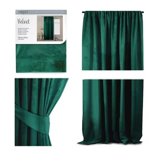 Zasłony Velvet na taśmie Rozmiar: 140x270 cm Kolor: ciemna zieleń Materiał: 100% poliester Stopień zaciemnienia: 77% Pielęgnacja: