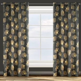 Zasłona Ofelia to modna dekoracja okienna z motywem liści miłorzębu na grafitowym tle.