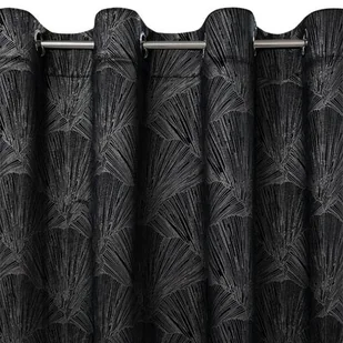Eurofirany Zasłona 140x250 Goja czarna welurowa liście miłorzębu na przelotkach Pierre Cardin z błyszczącym nadrukiem