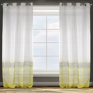 Gotowa zasłona Abi 140x250 Biała marki Eurofirany - w opakowaniu 1 zasłona Delikatna zasłona z etaminy z nadrukiem w kolorze szarości i musztardowym. Dół ozdobiony kolorowym akcentem z efektem przenikania szarych i złotego. szerokość: 140 cm, długość: 250 cm, kolor: biały, Gramatura:
