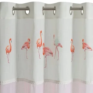 Gotowa zasłona Flamingo 140x250 Różowa marki Eurofirany - w opakowaniu 1 zasłona Niebanalna zasłona w kolorze różowym udekorowana w górnej części nadrukiem flaminga na białym tle, oddzielona delikatną lamówką z koronki. Bardzo kobieca. szerokość: 140 cm, długość: 250 cm, kolor: różowy, Skład: