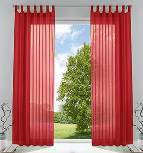 Gardinenbox Zestaw 2 przezroczystych zasłon do salonu, woal, zasłona ze szlufkami z ołowianej taśmy, 100% poliester, czerwony, wys. x szer. 225 x 140 cm
