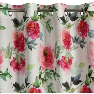 Eurofirany Zasłona 140x250 Petra biała różowa kwiaty gotowa na przelotkach