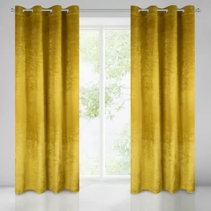 Zasłona Gotowa Na Przelotkach 140X250 Elizia Musztardowa Welurowa Zdobiona Brokatem Eurofirany