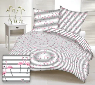 Zasłona gotowa na szelki 160x250 biała flamingi różowe paski szare