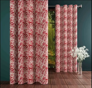Ciekawa zasłona w odcieniach borda w ciekawe wzory kwiatowe, uszyta na przelotkach. Zasłona zaciemniająca. Skład 100% poliester , Rozmiar 180x250 cm z możliw...
