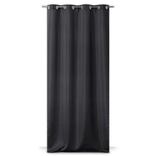 Zasłona LASIOS na przelotkach 140 x 240 czarna Model LASIOS to kwintesencja prostoty i ponadczasowej elegancji. Spokojna, uniwersalna kolorystyka połączona jest z drobnym, geometrycznym deseniem, dzięki czemu zasłona bez trudu dopasuje się do każdej aranżacji wnętrza, zarówno do jasnej jak i ciemnej kolorystyki mebli oraz dodatków. Półtransparentna zasłona LASIOS zawieszana jest na przelotkach, dzięki czemu wygodnie się przesuwa i estetycznie układa na karniszu. Wykonana jest z wysokiej jakości poliestru o gramaturze 0,65 g/m2 i dobrej odporności barw na działanie światła, dzięki czemu na długi czas zachowa swój piękny, elegancki wygląd. Materiał jest trwały, odporny na zagniecenia i łatwy w konserwacji.