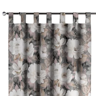 Zasłona na szelkach 1 szt., kremowe i różowe kwiaty na szarym tle , Gardenia