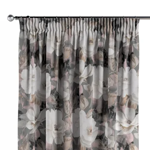 Zasłona na taśmie marszczącej 1 szt., kremowe i różowe kwiaty na szarym tle , Gardenia