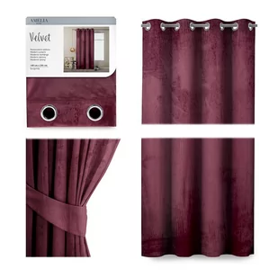 Zasłona VELVET kolor bordowy styl klasyczny przelotki srebrne velvet 140x245 ameliahome - CURT/AH/VELVET/EYELETS/BURGUNDY/140X24