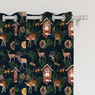 Zasłona WINTER wzór BN24 | akwarelowy renifer z pomarańczą 150 x 280 cm tkanina zaciemniająca