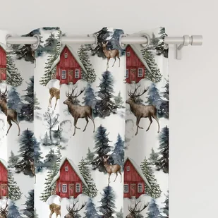 Zasłona WINTER wzór BN26 | czerwona chatka w lesie 150 x 150 cm tkanina standard Kolekcja: WINTER Ilość w opakowaniu: 1 szt. - zasłonowa tkanina standard z t...