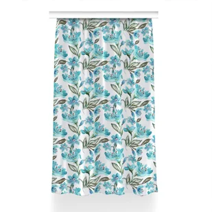 Zasłona z grafiką gotowa Turkusowe kwiaty 150x240, Fabricsy
