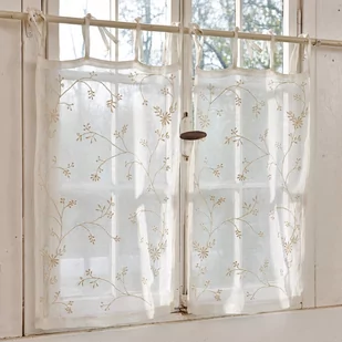 Z kwiatowym haftem w pasującym odcieniu. Wąski krój. Z czystego lnu. Sznurki do wiązania u góry służą do szybkiego założenia zazdrostki na karnisz, a jednocześnie podkreślają romantyczny wygląd.