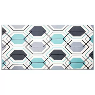 Prostokątny, kolorowy dywan z geometrycznym wzorem Ten modny geometryczny wzór w granatowe, błękitne i szare sześciokąty podkreśla charakter każdego mieszkania. Dywan wykonany jest z wysokiej jakości filcu, który zapewnia doskonały wygląd i trwałość. Prezentowany model stanowi stylowy i elegancki element dekoracyjny każdej podłogi, który nie tylko upiększa pomieszczenie, ale również nadaje mu jaśniejszy wygląd. Szczegóły: Kolor: Kolorowy, Niebieski, Biały, Szary. Materiał: Poliester. Skład materiału: