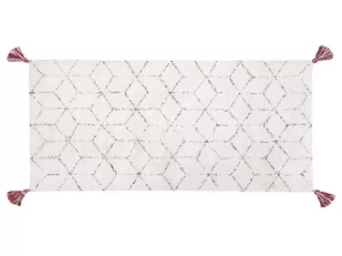 Długowłosy dywan z ozdobnymi frędzlami i geometrycznym wzorem Dodaj orientalnego akcentu do swojego wnętrza. Ten dywan, wykonany z wysokiej jakości bawełny, idealnie nada się do pomieszczeń inspirowanych stylami bizantyjskimi czy wschodnimi. Ozdobne frędzle znajdujące się na jego rogach przyciągają uwagę i dodają stylu całemu dywanowi. Dzięki swojemu długiemu włosiu jest on przyjemny w dotyku i idealnie sprawdzi się w sypialni lub salonie. Szczegóły: Kolor: Biały. Materiał: Bawełna.