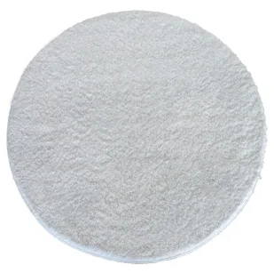 Skład: 100% PP Heat Set Frise Wysokość runa: +/- 25 mm Waga/m2: 2000 g Kształt: koło Kolor: biały Antypoślizgowy spód: