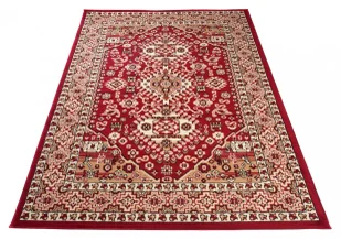 Skład: włókna polipropylenowe (PP) Frise Wysokość runa: +/- 10 mm Waga/m2: 2200 g Kształt: prostokątny Kolor: bordowy+beżowy Wymiary: