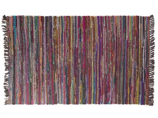 Zapewni to równomierne zużycie i zapobiegnie blaknięciu kolorów pod wpływem światła słonecznego. Prostokątny dywan w stylu boho. Wprowadź do swojego mieszkania motywy boho dzięki temu dywanowi. Wykonany z łatwej w utrzymaniu bawełny, jest bardzo miły w dotyku, idealnie sprawdzi się jako dodatek do sypialni czy salonu. Jego kolorowa, krótkowłosa powierzchnia przyciąga uwagę i ozdobi każde wnętrze stylową mieszanką barw.