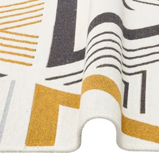 Arya to kelim z nowoczesnym azteckim wzorem, który posiada frędzle po obu stronach. Kilim jest dwustronny i sprawi, że każde wnętrze stanie się przytulne i przytulne. Kolekcja Arya jest wytwarzana maszynowo ze 100% bawełny pochodzącej z recyklingu. Wysokość stosu wynosi ok. 0,5 centymetra, dlatego nadaje się również do pomieszczeń z ogrzewaniem podłogowym.