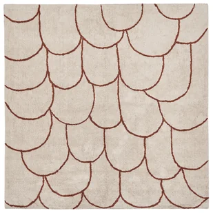 Kwadratowy, jasnobeżowy bawełniany dywan z brązowym wzorem. Czy Twój salon, jadalnia lub sypialnia potrzebują przytulnego akcentu? Dzięki prostemu motywowi, pikowanej powierzchni i kwadratowemu kształtowi, ten przyjemnie miękki dywanik z pewnością będzie idealnym dodatkiem do tych pomieszczeń i nie tylko. Został on wykonany z przyjemnej w dotyku bawełny, która została połączona z wytrzymałymi włóknami poliestrowymi, aby stworzyć model, który zachwyca trwałością i przytulnością swoich materiałów. Ten dywan z tkaniny jest zatem szczególnie odpowiedni do miejsc o dużym natężeniu ruchu w domu. Dzięki bawełnianej powierzchni zapewni również stopom przytulne ciepło na sofie, łóżku lub fotelu.