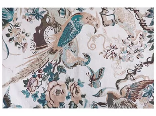 Upiększ podłogę swojego salonu za pomocą tego niestandardowego dywanu. Wyszyty motyw ptaków oraz kwiatów czyni z niego prawdziwy dodatek o eleganckim, niemal rustykalnym designie. Wyprodukowany z bawełny, dywan jest bardzo miękki, lecz trwały. Połóż go na środku swojego pokoju, by uczynić aranżację bardziej stylową i wyrafinowaną.