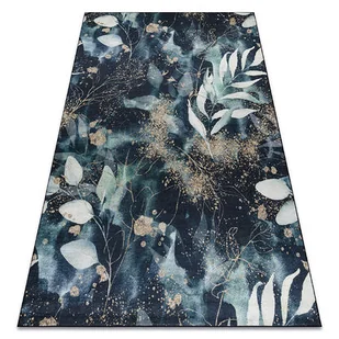 Dywan do prania ANDRE 1336 Liście antypoślizgowy - czarny / turkusowy Turkus, 160x220