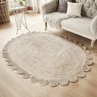 Ręczne tkanie. Jutowy dodatek do każdego pomieszczenia. Przepiękny kształt z falistą krawędzią. Dodatek tekstylny, który łączy efektowne wzornictwo z dbałością o środowisko. Ręcznie tkany dywanik z juty zachwyca pięknym okrągłym kształtem i stylowym obszyciem z falistym wykończeniem.