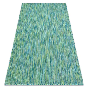 płaskotkanym, sznurkowymbardzo wytrzymały i długo zachowuje swój naturalny wygląd, właśnie ze względu na technologię płaskiego tkaniaodporny na odgniatanie się, więc funkcja estetyczna zachowana jest na najwyższym poziomiebardzo praktyczny w użytkowaniu i bardzo łatwo się go czyściodporny na warunki atmosferyczne, więc może być stosowany na zewnątrz np. balkon czy taras. Kolorystyka dywanu jest dość niespotykana. Niebieski wymieszany z zielenią to nie lada wyzwanie dla danego wnętrza. Jednak osoby o artystycznej, nieposkromionej duszy z pewnością znajdą dla niego odpowiednie miejsce w swoim domu.