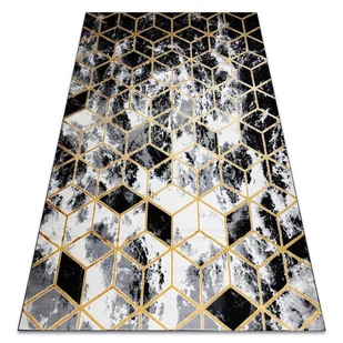 Cechy charakterystyczne dywanu GLOSS: połączenie bieli oraz czerni z odcieniami szarości i złota, które idealnie sprawdzi się w każdym wnętrzu; krótkie włosie miłe w dotyku, dzięki czemu użytkowanie staje się czystą przyjemnością; do produkcji zostały użyte trzy rodzaje przędzy – polipropylen i poliester shrink oraz shiny poliester, co zapewnia trwałość na lata; dywan dostępny w rozmiarach: 80x150 cm, 120x170 cm, 140x190 cm, 160x200 cm, 180x270 cm, 200x290 cm, 240x330 cm, 280x370 cm, dzięki czemu wpasują się do każdego wnętrza; ciekawy efekt 3D wprowadza nutę nowoczesności, którą goście z pewnością będą zachwyceni. Nieszablonowe połączenie kolorów sprawia, że motyw ten sprawdzi się we wnętrzach, w których chcemy przełamać klasykę nie odejmując elegancji i szyku. Połączenie stylu i funkcjonalności dzięki zastosowaniu krótkiego włosia przypadnie do gustu nie tylko miłośnikom sprzątania.