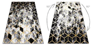 Cechy charakterystyczne dywanu GLOSS: połączenie bieli oraz czerni z odcieniami szarości i złota, które idealnie sprawdzi się w każdym wnętrzukrótkie włosie miłe w dotyku, dzięki czemu użytkowanie staje się czystą przyjemnościądo produkcji zostały użyte trzy rodzaje przędzy – polipropylen i poliester shrink oraz shiny poliester, co zapewnia trwałość na latadywan w rozmiarach: 80x150 cm, 120x170 cm, 140x190 cm, 160x200 cm, 180x270 cm, 200x290 cm, 240x330 cm, 280x370 cm, dzięki czemu wpasują się do każdego wnętrzaciekawy efekt 3D wprowadza nutę nowoczesności, którą goście z pewnością będą zachwyceni. Nieszablonowe połączenie kolorów sprawia, że motyw ten sprawdzi się we wnętrzach, w których chcemy przełamać klasykę nie odejmując elegancji i szyku. Połączenie stylu i funkcjonalności dzięki zastosowaniu krótkiego włosia przypadnie do gustu nie tylko miłośnikom sprzątania.